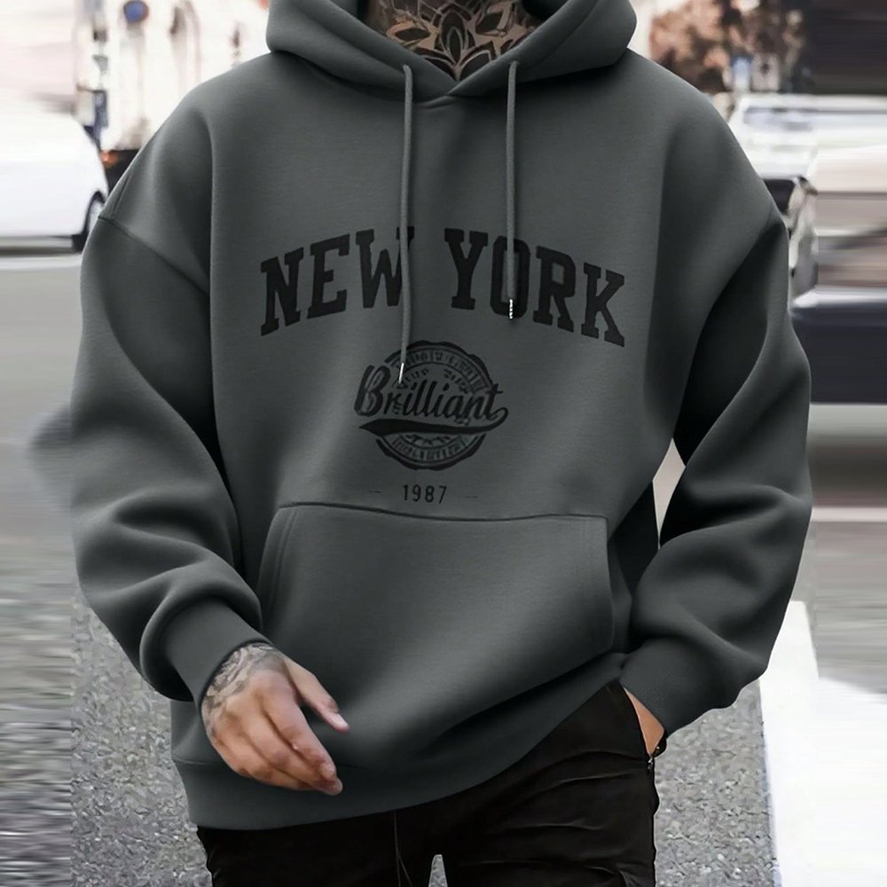 Men’s Casual Fashion Street New York Print Kangaroo Pocket Drawstring Hoodie, Fleece Lined, Autumn/Winter Men’s Casual Fashion Street New York Print Kangaroo Pocket Drawstring Hoodie, Fleece Lined, Autumn/Winter Dark Grey Avant-Garde – Street Casual Long Sleeve Knitted Fabric Graphic, Letter Slight Stretch Spring/Fall, Fall/Winter Men Clothing, size features are:Bust:, Length:, Sleeve Length: